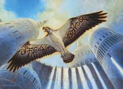 Aesthir are giant birds that were used by the Kjeldorans of Dominaria's Ice Age every bit flight mounts for their aristocracy skyknights. Aesthir were highly prized past the Kjeldorans, with mistreatment or disrespect towards them beingness heavily frowned upon. They gradually became extinct later the Ice Age ended and their natural habitat disappeared. It is said that Oriel Kjeldos was the first to train an Aesthir, and that Márton Stromgald was the offset to use them in combat against the goblins.